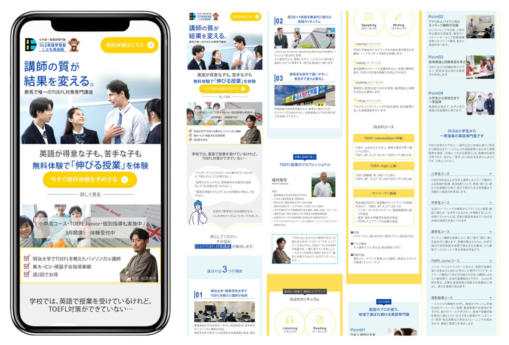 ・LP構成設計〜デザイン制作 ・スマートフォン対応(レスポンシブ)