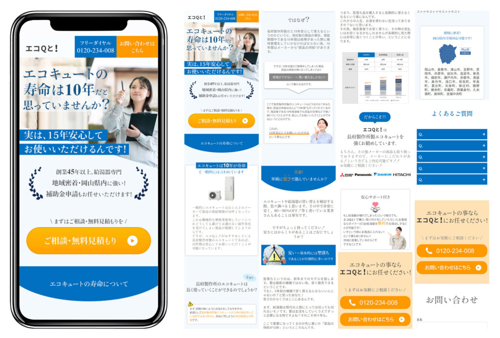 ・段階的で明確なストーリー構成に合わせて、適度な余白とセクション分けにより、長尺LPでも読み疲れしない視覚的リズムを実現